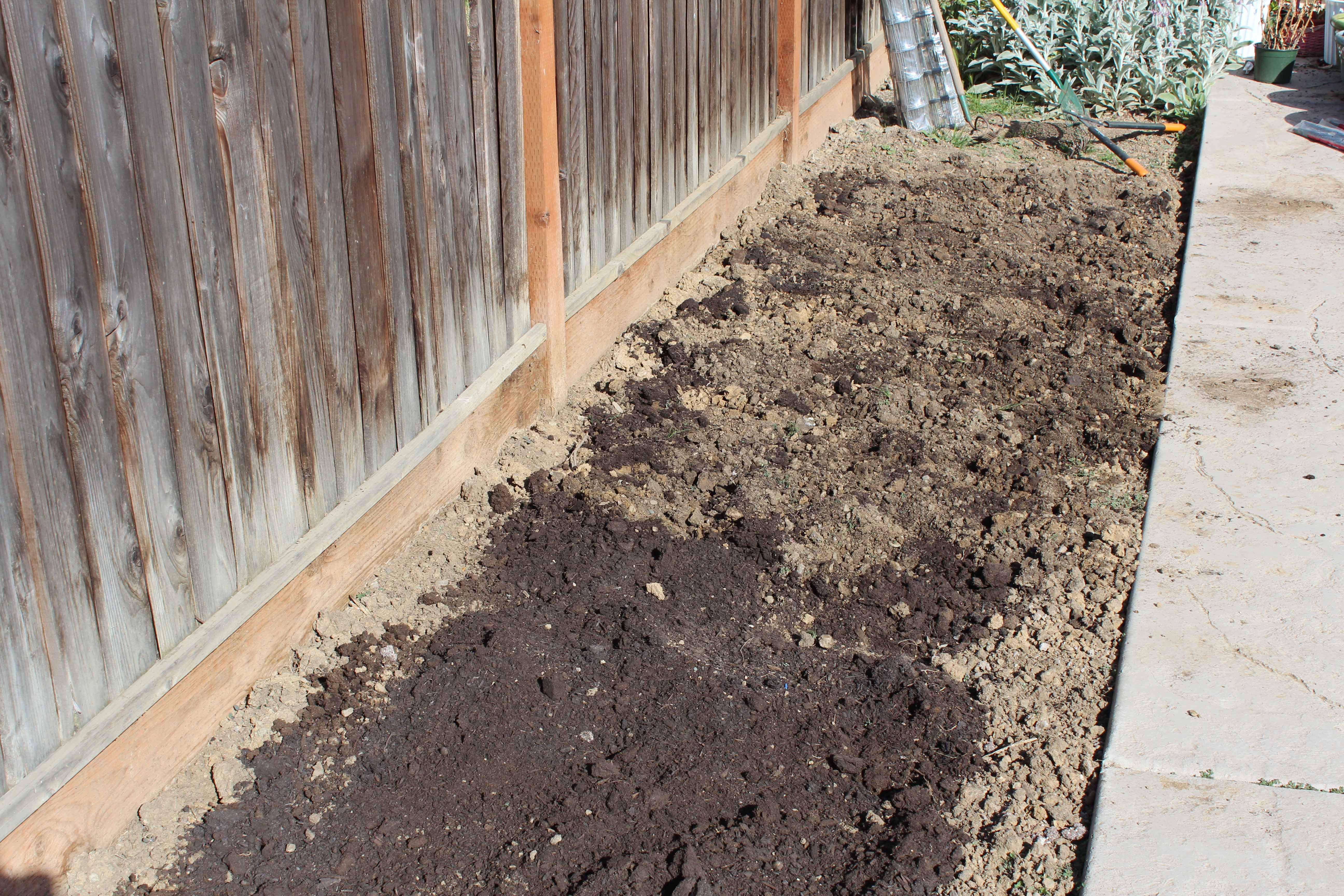 Once you have all that out of the way, get your strong significant other to put the heavy potting soil into the container (I used 2 cubic feet of soil in these planters). Be sure you’ve purchased the right soil for containers – I bought the wrong stuff the first time!