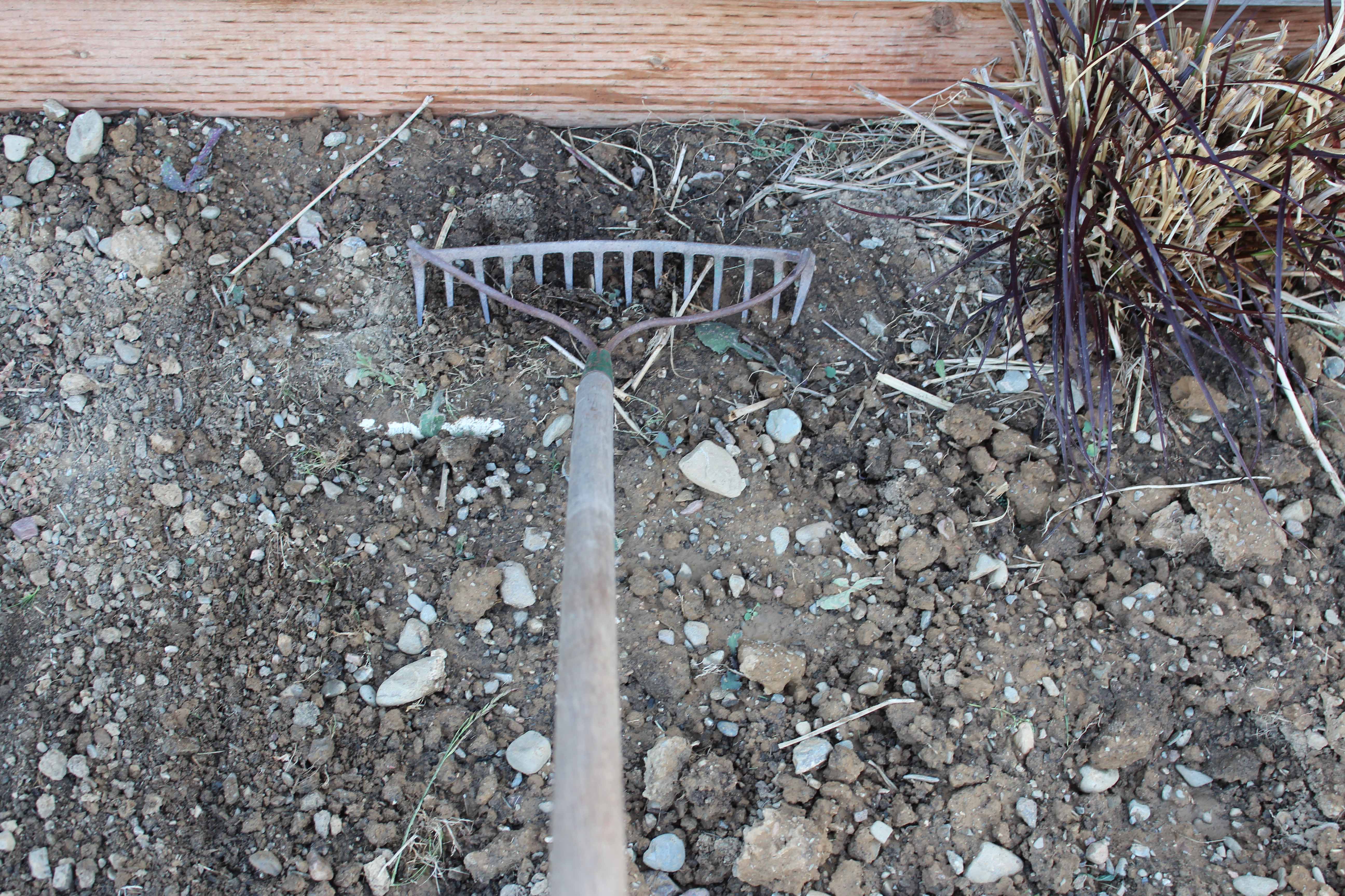 I made nice size hole, and then filled in the bottom of the containter with rocks from my garden for additional drainage help. (With a container this size, I probably should have put in 3 holes, but I was feeling lazy that day, so hopefully the rocks will compensate. I’ll let you know how it goes!)